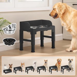 • Höhenverstellbare Futterstation – passt sich der Größe des Hundes an